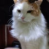 Белый кот, в рыжие пятнышки. На носике пятнышко. В руки даётся, ласковый, постоянно мяучит.