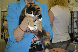 Особое внимание посетителей привлек ринг котят, где малышей представила эксперт из Украины Татьяна Дьячук. Рассказывая о стандартах пород и характерах кошек, судья то и дело признавалась им в любви, а со зрителями делилась ценной информацией о вязке, руфизме и о том, как правильно демонстрировать кошек разных пород.