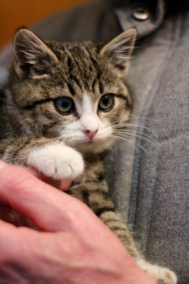 В Кошкином Доме моих родителей очередное пополнение. Я называю Тигренка ласково - Котлеткой :)) Родители назвали котенка Женькой. Девочку 2,5 месяцев еще один наш спасеныш - лайка Дана - нашла под калиткой родительского дома перед вечерней прогулкой. Малышка была в таком состоянии, что мама думала, что котенок не доживет до утра. Она была совершенно измучена и сильно простужена. Но Котлетка справилась. Очень хотела жить. Когда папа на следующий день привез ее к ветеринару, тот сказал - правый глаз не спасем. Папа сказал: «Чтоооооооооооо??!! Нет уж, дудки!». Через 2 недели каждодневного, усиленного лечения - уколов, каплей - смотрите, какие у нее восхитительные зеленые глаза! Этот котенок - как маленькая пухлая птичка :) Не потому, что толстая, а будет пушистая :) Она пока пугливая, настороженная. К родителям уже привыкла, доверяет, когда 1-2 гостя в доме - настороженно наблюдает, а вот если толпа - уже прячется и следит из засады. Ей нужно время, чтобы адаптироваться, пережить стресс и страхи после случившегося. А вообще она ласковая (пурчит на ручках), с интересом наблюдает за всеми процессами, играет. Очень любит нашего кота Кузю, ластиться к нему, то есть проблем в отношениях с другими питомцами у нее явно не будет. Мы ищем для Фени добрых, ответственных хозяев. Я готова даже подготовить и доставить котенка в Россию, если понадобится. #котеноквдарЦена: